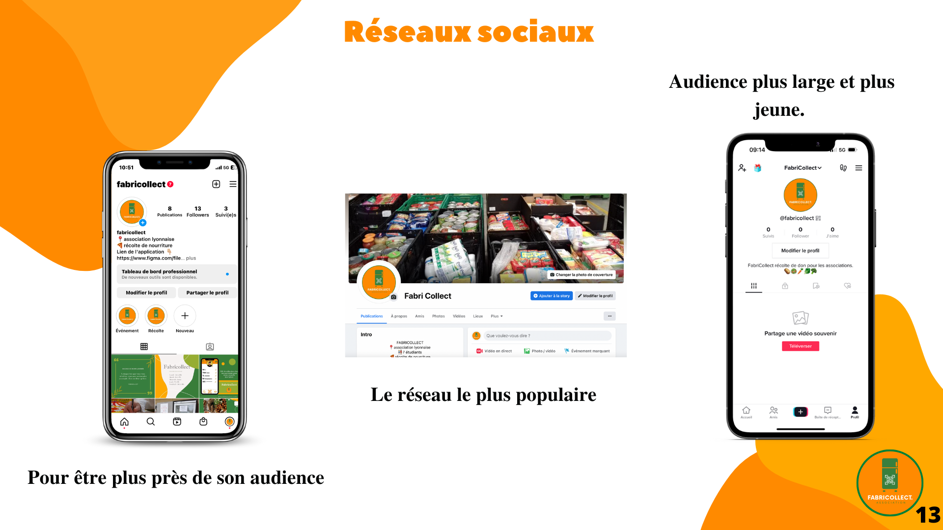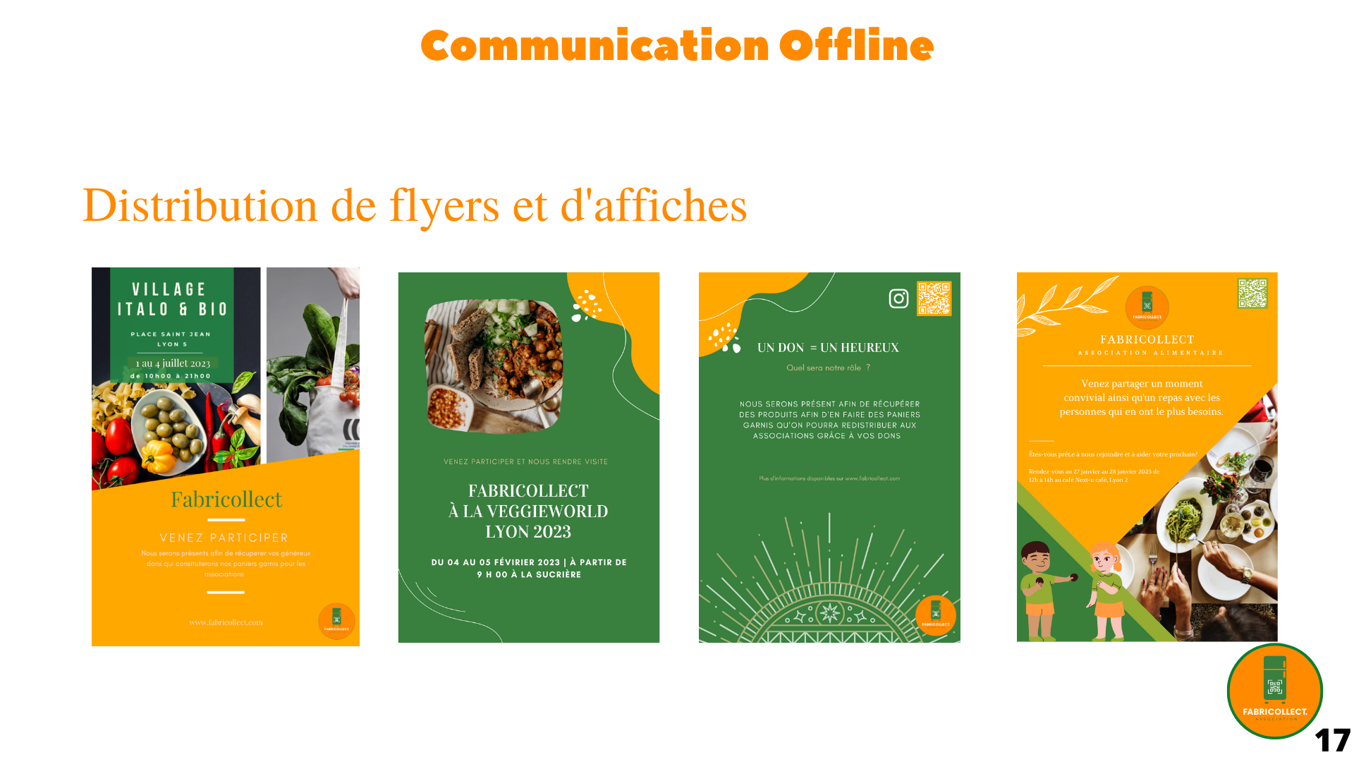 Création de Fabricollect: l’association consiste à redistribuer les denrées récoltées aux associations qui s’occupent de la distribution aux particuliers. On sera donc l’intermédiaire entre les denrées récoltées et la redistribution aux associations qui elles s’occuperont de le redistribuer aux personnes précaires.