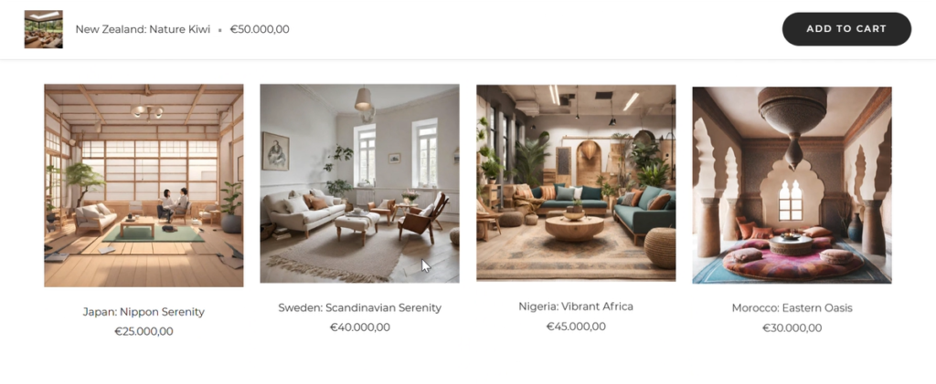La plateforme offre la possibilité d’acheter des meubles et des atmosphères, permettant aux utilisateurs de personnaliser leur espace de travail en fonction de leurs préférences culturelles et professionnelles. Nous aspirons à créer une expérience unique, où l’achat de mobilier est associé à la découverte de différentes cultures, favorisant ainsi un environnement de travail inspirant et harmonieux.