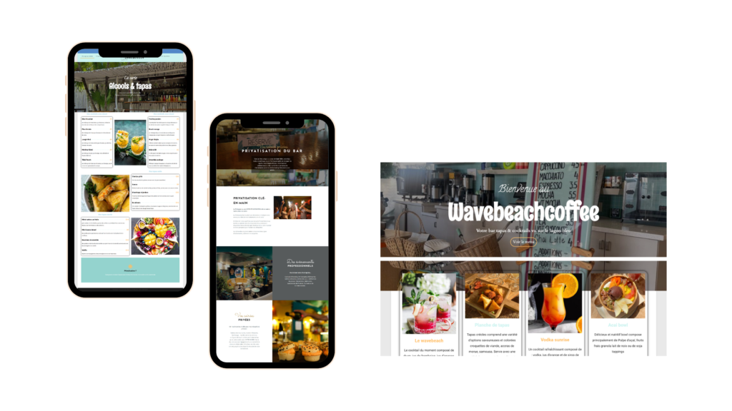 WaveBeachCoffee est le résultat d’un projet personnel. L’idée était de créer un bar à tapas en bord de mer, un lieu où les amateurs de surf pourraient se rassembler pour profiter de l’océan et se détendre au WaveBeachCoffee (WBC). Afin de concrétiser cette vision, la conception du site web, du logo et des couleurs est devenue essentielle.
